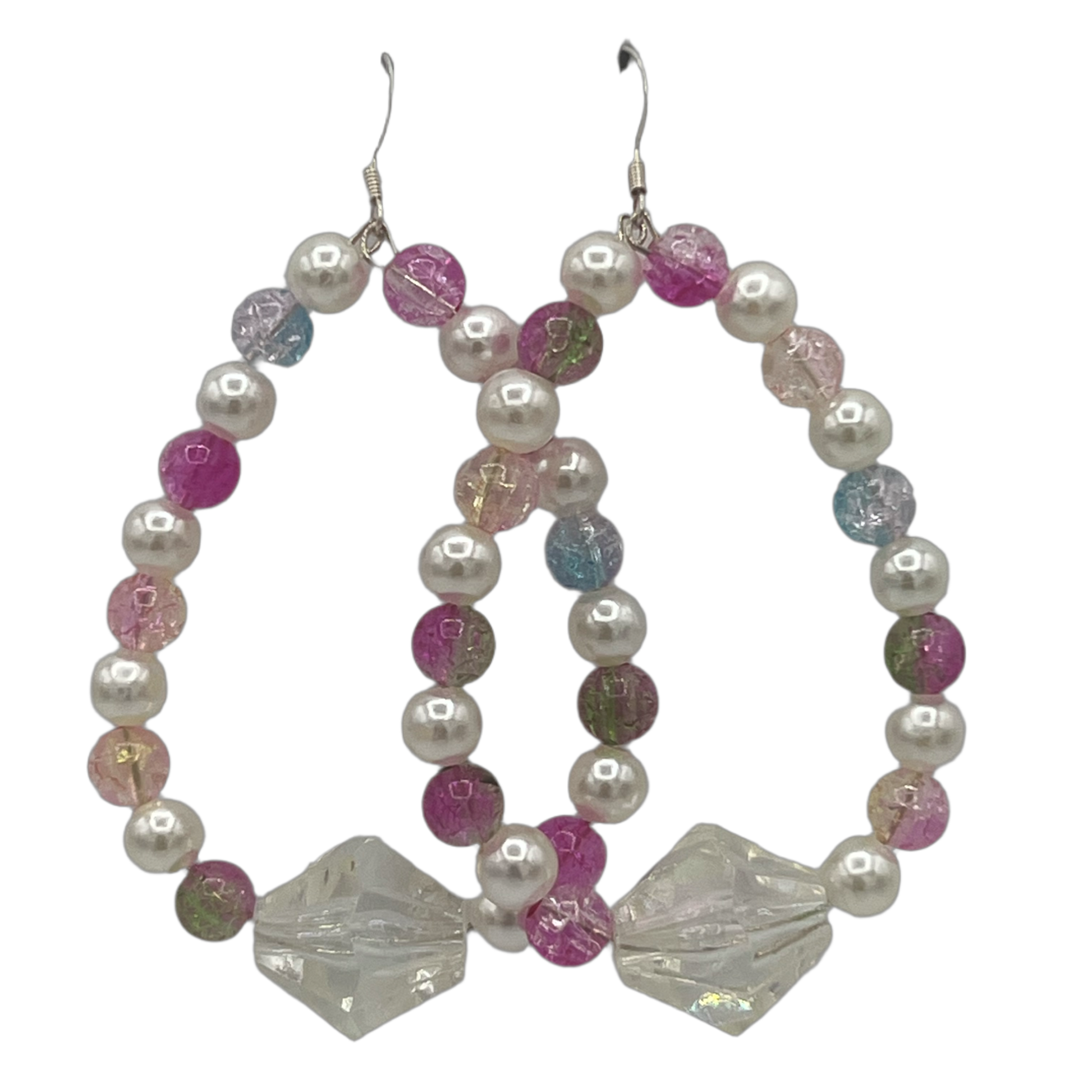Oval multi colored pearl earrings with crystal accents