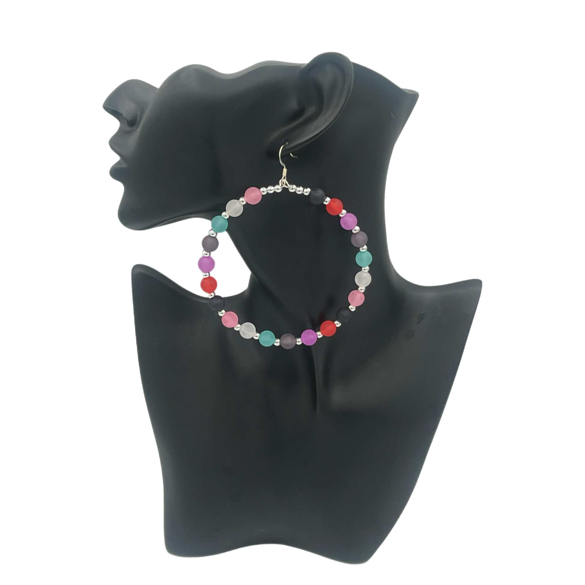Fun Girl| Multi Colored Ball Jumbo Hoop Earrings W/Silver Accents