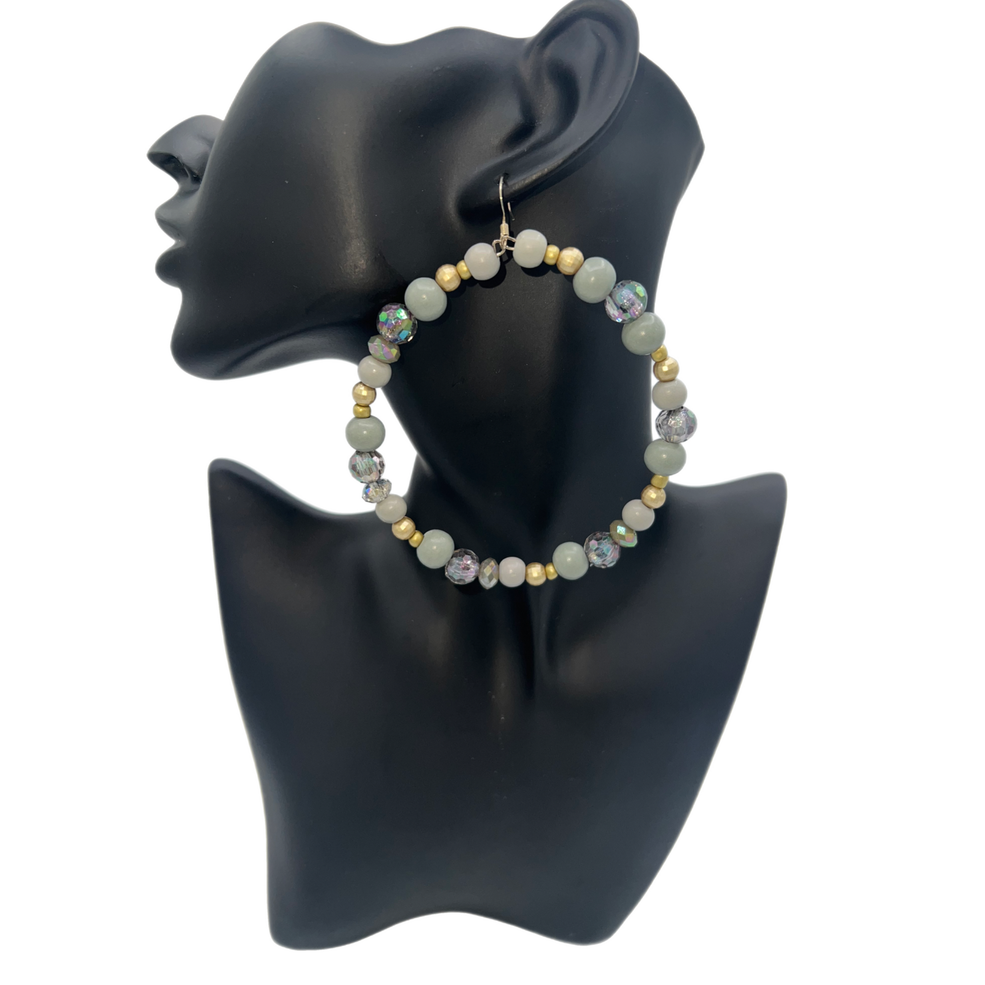 Stoned| Gray Opal Like Stone Jumbo Hoop Earrings