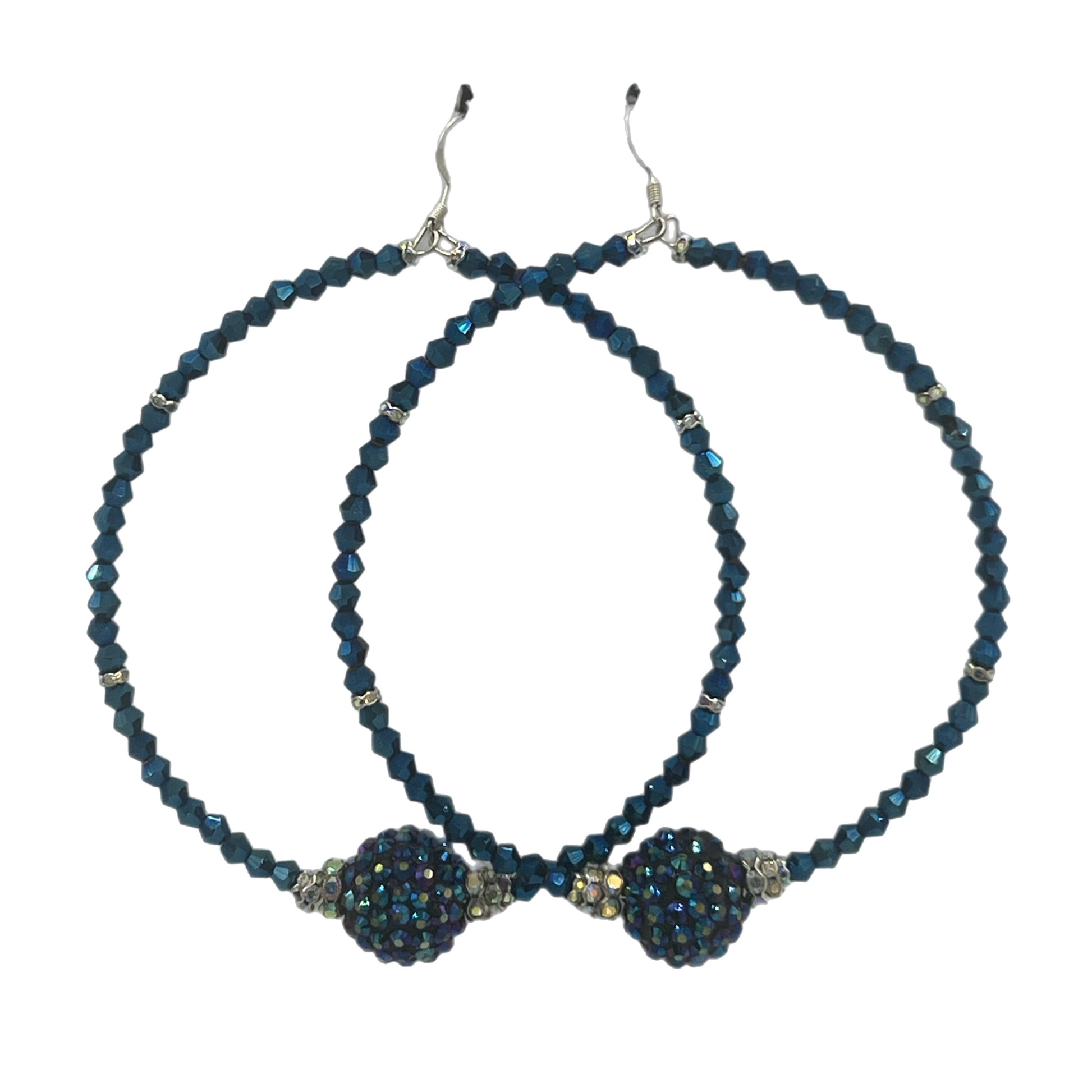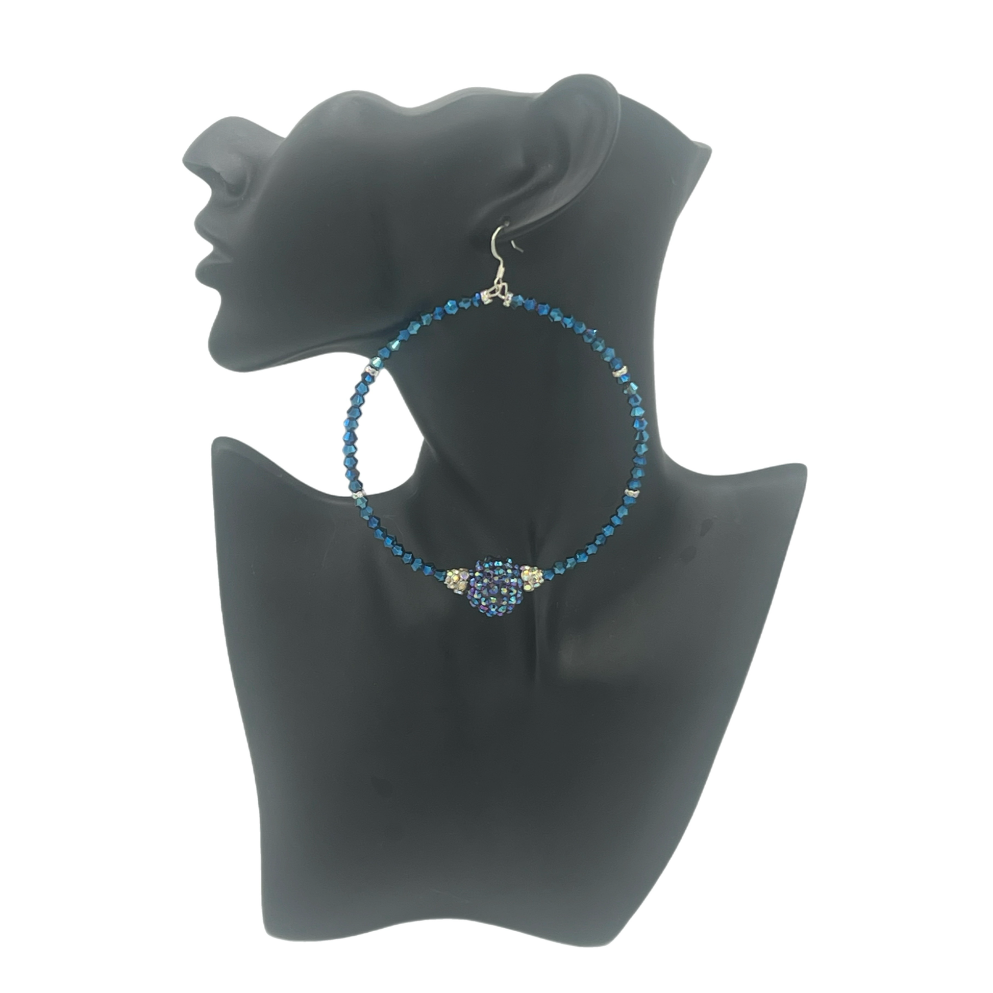 Thin crystal pentagon cobalt blue jumbo hoop earrings with Crystal blue ball accents