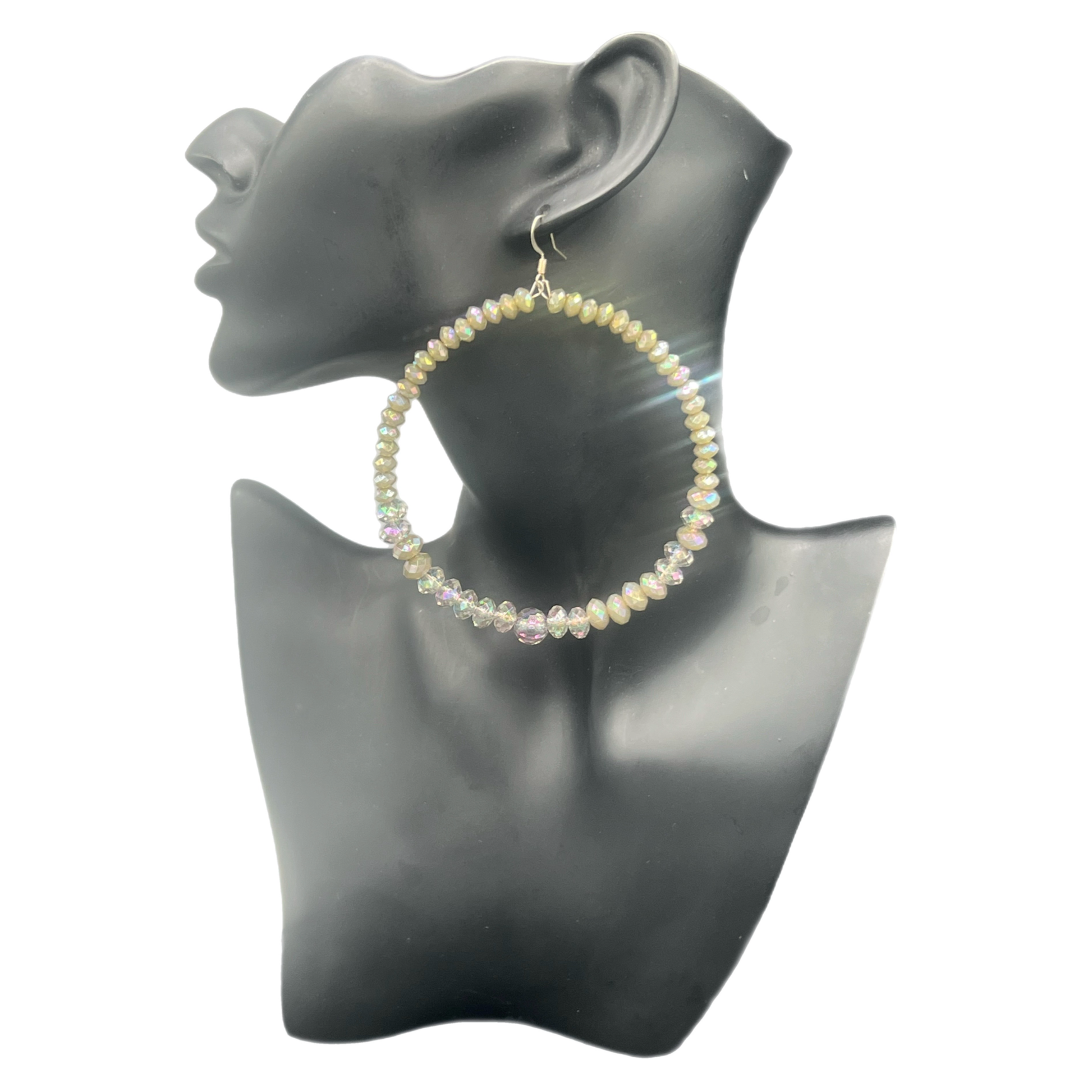 Ielia| Taupe Crystal Stoned Jumbo Hoop Earrings W/Ball Accents